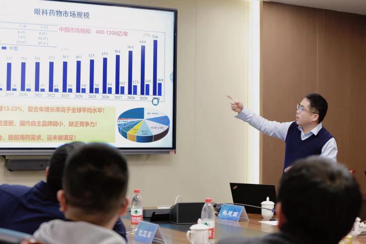 随后,校友孙建国博士就“眼科药物递送系统及植入器械”这一议题进行了深入探讨。他指出,当前国内眼医疗器械市场主要由国外品牌占据,国内产品大多集中在低端领域,缺乏足够的竞争力。面对日益加剧的老龄化趋势,眼科医疗器械和相关材料的需求呈现出快速增长的态势。以青光眼治疗为例,5种主要产品中只有1种国产产品,其销售额占比尚不足1%。这反映出国内眼科领域在技术研发和市场竞争力方面仍需加大提升力度。