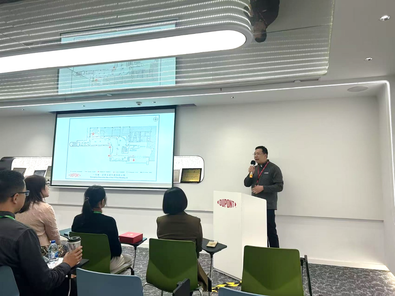 杜邦上海创新中心是基于先进材料科学与工程的开放式创新平台,致力于将杜邦全球解决方案与中国市场需求联系起来,为本地挑战带来新的视角和创新解决方案。在创新中心展厅,杜邦科技与创新事业部实验室工程师沈志伟和杜邦科技与创新事业部实验室工程师张佳燕为师生们带来了一场精彩的产品与技术分享。两位讲师从电子科技、下一代汽车、水处理、安全防护和工业技术五大领域出发,详细介绍了杜邦公司多元化的创新产品和解决方案。通过实物展示与案例讲解,师生们深入了解了杜邦在材料领域的前沿技术与应用成果,切身感受到科技创新如何推动各行各业的革新与发展。