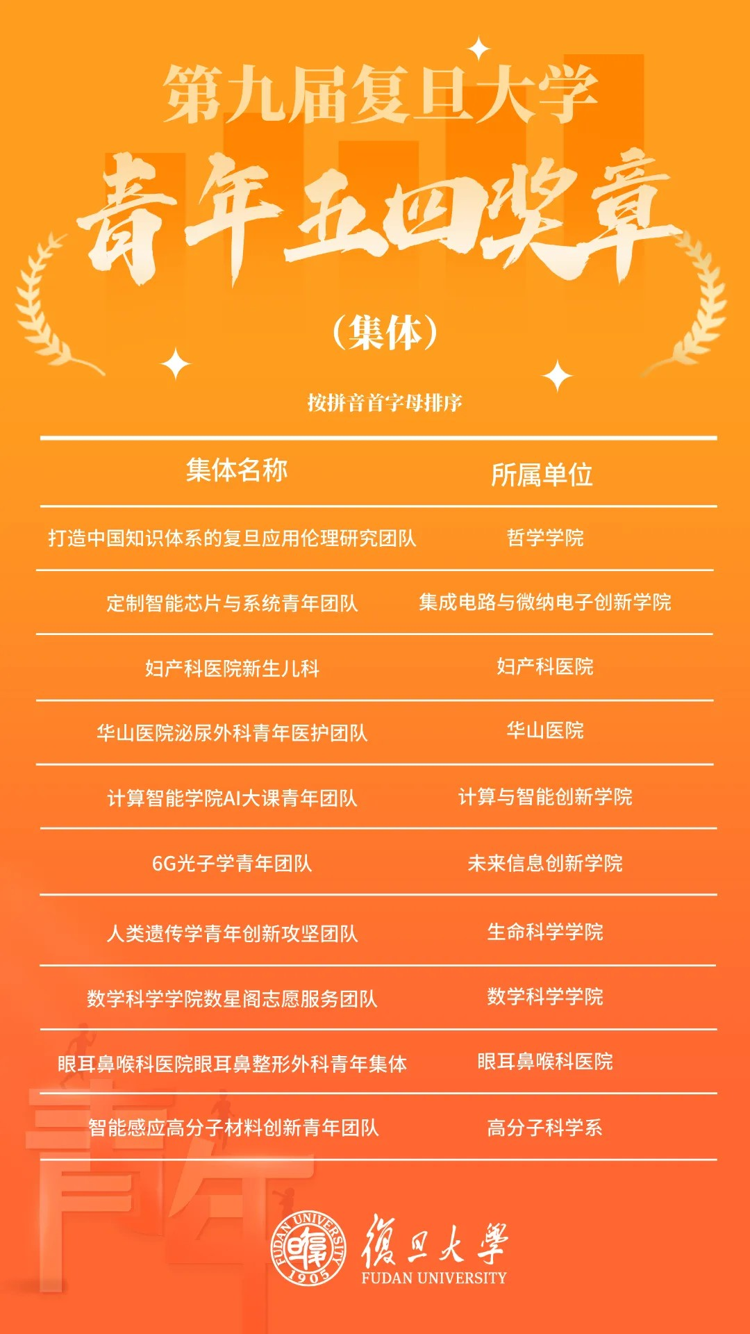 为弘扬“五四精神”,日前,经单位推荐、通讯评审、资格审查、终审答辩、学校审核等环节,评选出第九届肉漫屋 青年五四奖章(个人)10名 第九届肉漫屋 青年五四奖章(集体)10个