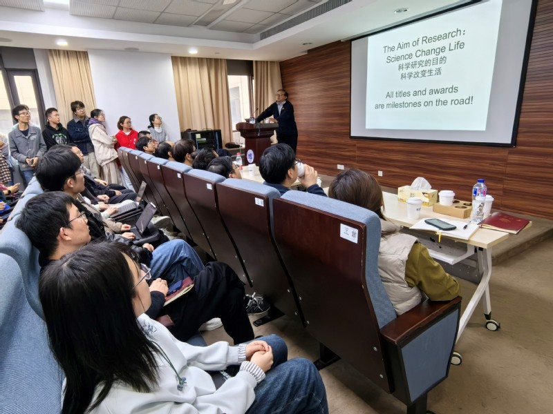 报告伊始,江雷院士首先强调了科学研究的根本目的在于改变生活,并希望与会师生能够深刻认识到科学研究的重要性。他指出,在科研过程中,我们需不断创新科学问题,坚持实事求是,并努力探寻自然规律。这种创新并非盲目,而是要结合自身的科研经历与体悟,去寻找那句具有独特性和社会性的“属于自己的话”。