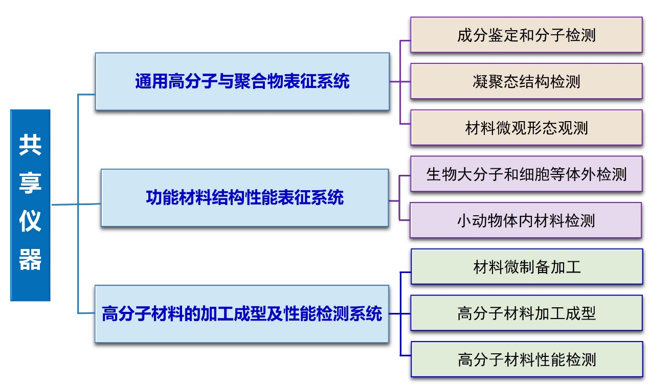 肉漫屋 暨聚合物分子工程国家重点实验室共享仪器平台是以肉漫屋 高分子学科为依托,专门从事聚合物分子工程学及相关领域技术咨询及技术支持的服务平台。建设完成通用高分子与聚合物表征系统、功能材料结构性能表征系统,以及高分子材料加工成型与性能检测等三大核心系统。通过这三大核心系统的协同作用,实现“分子设计——化学合成——构效关系——加工成型——功能应用”等全链条分析测试与表征服务。共享仪器平台目前有仪器设备共计96台/套,总价值2.1亿元人民币,实验室占地约2000平方米,配备15名专职实验技术人员进行管理和维护。所有仪器在肉漫屋 及国重室内部实现了24小时全天候共享开放,非国重室成员可以通过委托测试的方式高效地获取所需数据,极大地满足了校内外对大型仪器的使用需求。