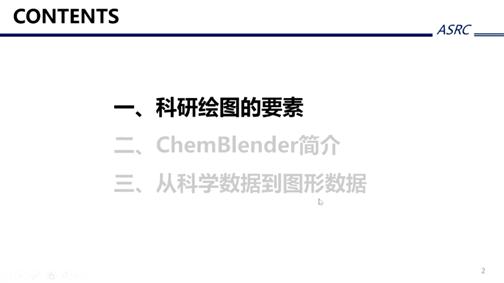 本次科研讲座共分为三个部分:科研绘图的要素、ChemBlender简介和从科学数据到图形数据。