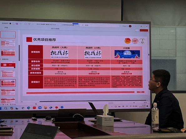 活动伊始,郑振宇、李婧怡从四个部分为参会同学们讲解本次“卓越杯”赛事。他首先介绍了本届卓越杯的赛程安排和参赛要求,接着详细介绍分析了各个赛道的特点以及每个赛道的报名要求和评审标准,接着又给大家提供实用的材料筹备建议,最后又做了往届优秀项目亮点分析。