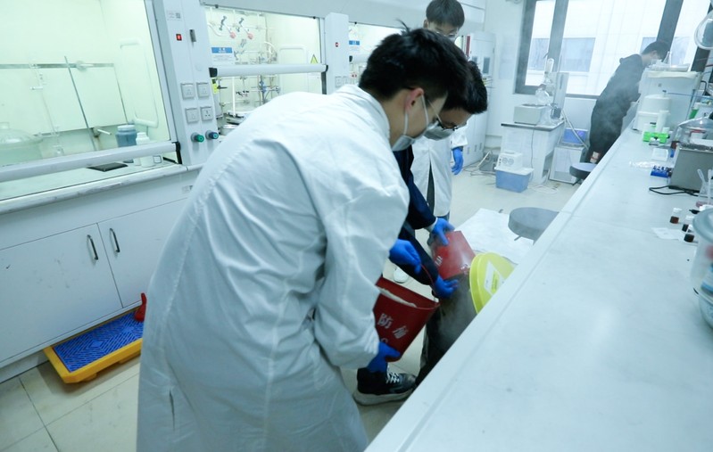 应急演练模拟的第一个场景:江湾校区高分子楼B5084实验室内的四位同学在通风橱内进行实验操作,使用电吹风引发电气火灾,引燃了烧杯内乙醚,慌乱中被打翻,造成流淌火,实验服袖口被点燃。与此同时,实验室曾经使用金属锂,由于认为已经反应完毕,丢入了垃圾桶,此时突然开始冒烟。