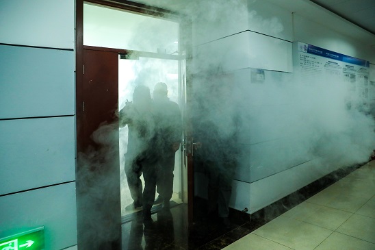 “据实场景式”应急演练的主要目的,就是为了考察学生们在突发事件下的真实应急反应,从而达到练兵的目的,因此演练策划者事前并未给学生任何剧本和台词,只是告知了学生的演练场景,在演练实验室现场安装的3个固定摄像头和2个流动摄像机记录下同学们的真实应急反应,以备复盘的时候由专家针对同学们的应急反应进行点评。