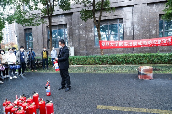 为了巩固此次演练成果,下午1时,2022级全体新生和新进博士后、科研助理约140人参加了由校保卫处组织的消防灭火实操演练,在活动现场模拟了“初发火灾”。保卫处老师首先详细介绍并演示了干粉灭火器和二氧化碳灭火器的使用方法(图23),随后同学们积极踊跃逐一上场进行现场操作。只见师生们站在火源上风安全距离处,“提”起灭火器,“拔”掉保险销,“握”住把手往下按“压”,对准火焰根部喷射,亲自体验灭火器使用方法和技巧。现场的很多学生纷纷表示这是他们第一次使用真正的灭火器,感觉与使用电子火有很大的不同。灭火器的实操训练使同学们学习并掌握到实用的扑灭初始火的方法,达到对于灭火器要“人人会操作、个个敢使用”的目的,这样才能在关键时刻,临危不乱,正确控制灾情。