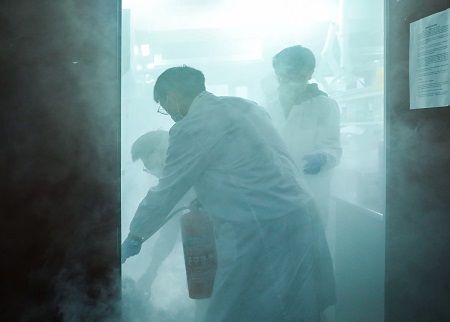 模拟场景1-1:发生流淌火,一学生的实验服袖口被点燃