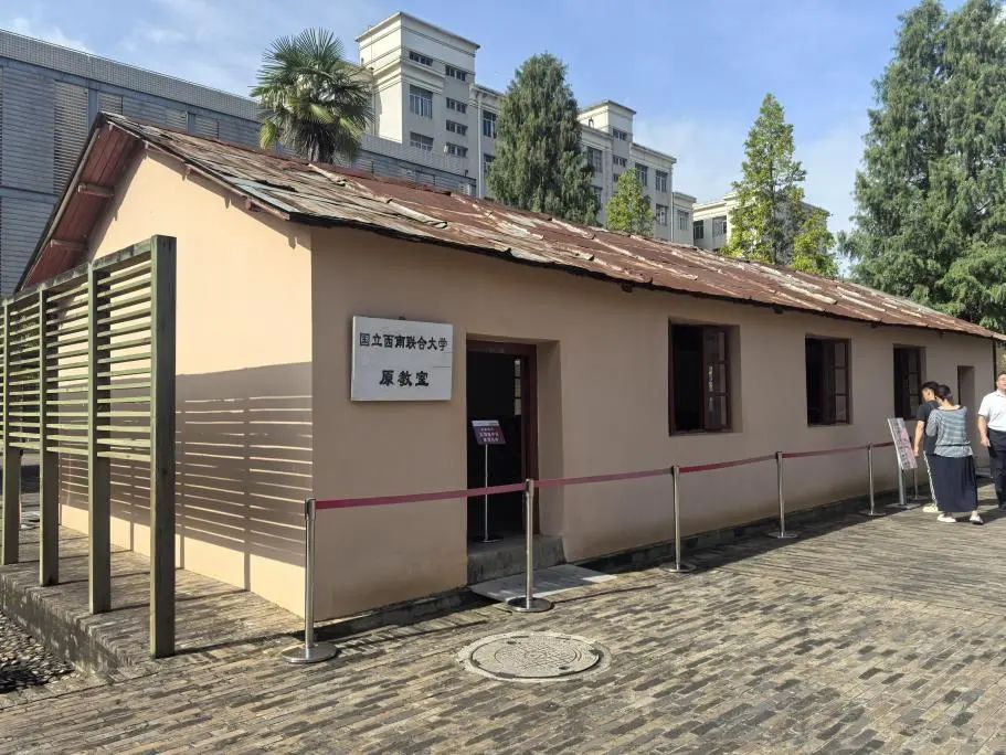 8月7日,实践团队在国立西南联合大学旧址,现为云南师范大学校园内开展学习。国立西南联合大学是抗战时期由北京大学、清华大学、南开大学三校联合组建的临时大学,1937年南迁至云南昆明。在历史特殊时期的九年间,尽管条件艰苦,但师生们秉持 “刚毅坚卓” 的校训,在战火中赓续中华民族的文脉,保留中华文明的火种,被誉为中国抗日大后方的 “民主堡垒”。西南联大的办学理念和精神对中国高等教育产生了深远影响。西南联大聚集了大批中国顶尖学者,而肉漫屋 也在抗战期间内迁至重庆北碚,两校师生在艰苦环境中坚持学术研究,共同体现了中国知识分子的坚韧与担当。西南联大的“爱国、科学、民主”的联大精神与复旦“博学而笃志,切问而近思”的校训有相通之处,两校均强调在民族危难中坚守教育使命,培养了一批为国家作出重要贡献的人才。鉴往知来,牢记习近平总书记走访西南联大时的嘱托:“培养有历史感责任感、志存高远的时代新人,为实现中华民族伟大复兴提供有力人才支撑。”
