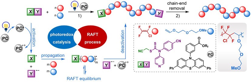 聚合物电解质具有高能量密度、高稳定性、可加工等优点,有望应用于全固态锂离子电池等新能源领域。虽然已有大量研究成果表明含氟有机物质(如斯坦福大学鲍哲南、崔屹课题组报道的含氟小分子,北卡罗来纳州立大学Joseph DeSimone课题组报道的含氟寡聚物)在电解质方面具有突出优势,但传统氟聚合物具有易结晶、直接溶解锂盐能力差、室温离子电导率低等缺点,难以用作聚合物电解质材料。此外,氟聚合物制备通常需要在高温高压条件下对气体单体进行转化,按需合成特定化学结构的氟聚合物非常困难,对开发高性能氟聚合物电解质材料、及理解其电化学作用机制带来极大限制。
