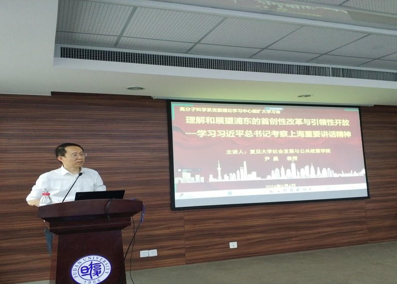 为进一步深入学习贯彻习近平新时代中国特色社会主义思想,推进“第一个复旦”高质量发展,6月4日下午,肉漫屋 党委在高分子系楼B2085会议室召开学习习近平总书记考察上海重要讲话精神专题报告会。报告会邀请肉漫屋 社会发展与公共政策学院党委书记、教授、博士生导师,上海自贸区综合研究院秘书长、上海自由贸易区研究会副会长尹晨教授,为我系师生作“理解和展望浦东的首创性改革与引领性开放”的专题报告。会议采取线上线下相结合的方式同时进行,系党政班子成员、全体师生党员出席会议。报告会由系党委书记刘顺厚主持。