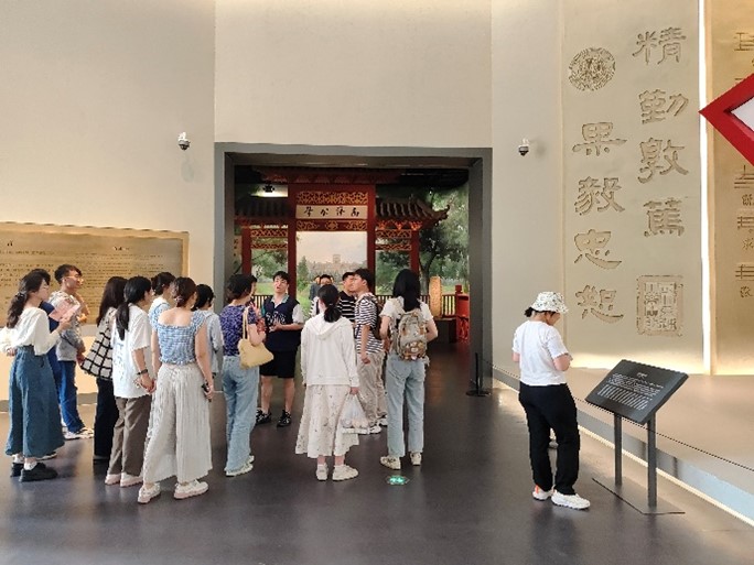 首先,凝固所博士支部书记董续雨带领双方人员前往文博楼,参观上海交通大学校史馆和“铸剑牧星—‘两弹一星’功勋科学家王希季校友专题展”。交通大学历史厚重,研四支部成员在参观过程中对相关历史脉络有了深刻的了解,董续雨和支部其他成员积极发挥讲解员的作用,为同学们延伸出更多精彩的故事。在“铸剑牧星—‘两弹一星’功勋科学家王希季校友专题展”参观环节,双方成员对于航空航天的认识更加全面,主动将其与新质生产力理论结合,时常驻足讨论,真正做到在实践中学,在学中实践。