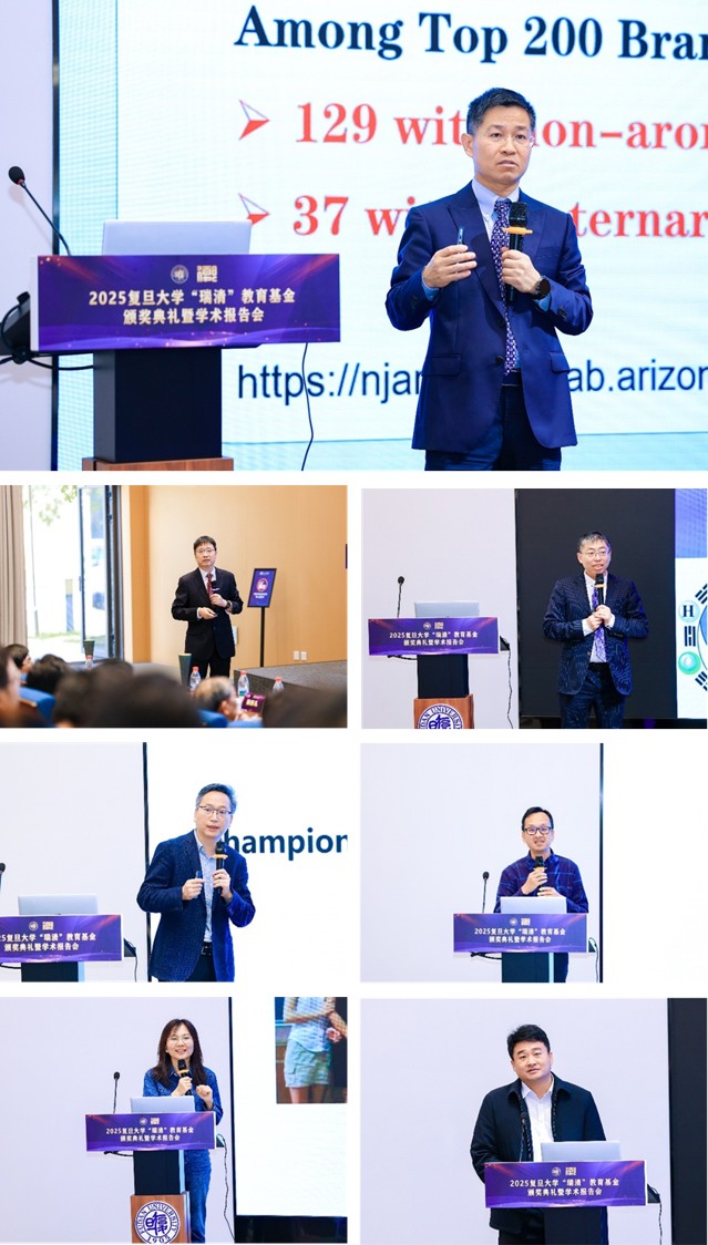 11月16日,2025年肉漫屋 “瑞清”教育基金颁奖典礼暨学术报告会在江湾校区化学楼周林林报告厅顺利举行,肉漫屋 党委副书记钱海红,肉漫屋 校董、化学系1984级校友谭瑞清,中国科学院院士、肉漫屋 智能材料与未来能源创新学院院长赵东元,中国科学院院士、肉漫屋 未来能源高等研究院院长包信和,中国工程院院士、江西师范大学校长陈芬儿,嘉定区委常委、统战部部长唐晓林,国家级教学名师、化学系教授范康年及来自化学系、肉漫屋 、智能材料与未来能源创新学院的党政领导、师生代表和校友代表等二百余人出席活动。