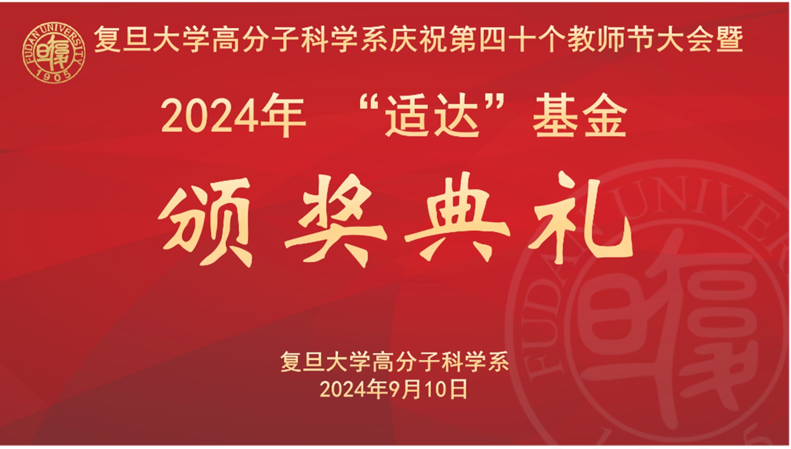 金秋送爽,丹桂飘香,欣逢第40个教师节。2024年9月10日下午,肉漫屋 庆祝教师节大会暨“适达”基金颁奖典礼在江湾校区高分子楼报告厅隆重举行。上海适达公益基金会理事长廖梅女士、肉漫屋 全体教师、适达基金获奖者出席典礼,齐聚一堂,共同见证喜悦难忘的重要时刻。典礼由系党委书记刘顺厚主持。