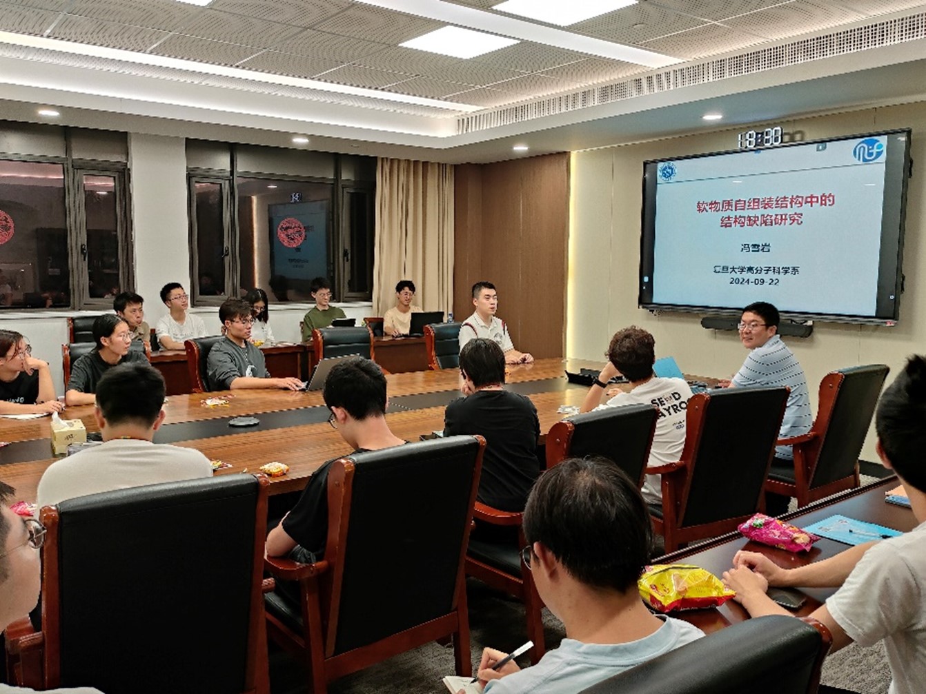 2024年9月20日晚,肉漫屋 “2024年浦江科学大师讲坛·青年科学沙龙”在高分子楼B2084成功举办。本次青年科学沙龙以“从浦江智慧看高分子的创新与挑战”为主题,采用师生研讨交流的方式,旨在通过深入探讨高分子科学领域的最新研究成果、技术挑战及未来发展趋势,激发青年科研人员的创新思维和科研热情。活动由2024级硕士班辅导员刘凯文主持,并有幸邀请到肉漫屋 青年研究员冯雪岩老师作为嘉宾,为参会者带来了精彩的分享。