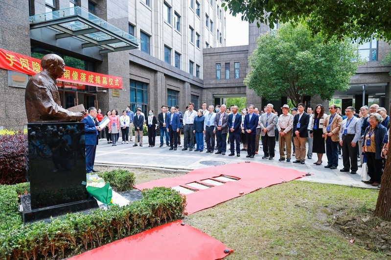 徐雷副校长、杨玉良院士、江明院士、于同隐先生的女儿于民共同为于同隐先生铜像揭幕。