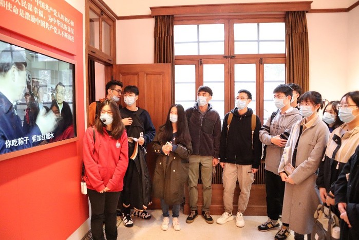 20年春,陈望道在浙江老家柴房中废寝忘食地翻译《共产党宣言》,将墨水误作红糖,吃下母亲送来的粽子。“蘸着墨汁吃粽子,还说味道很甜”。这则小故事被习近平总书记多次提及,演变成一句话“真理的味道有点甜”,在展厅中播放了习近平总书记深情地讲述了这个故事。各位党员同学观看后,确实深受触动和启迪,也感受到真理力量的坚定与强大,这对于我们不忘初心、牢记使命,把新时代中国特色社会主义推向前进,是一次深刻的教育。同学们从展中更深刻地感悟到“中国共产党为什么能”“马克思主义为什么行”“中国特色社会主义为什么好”。