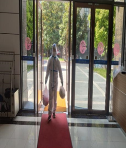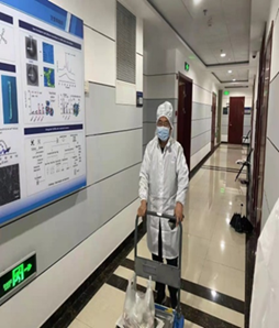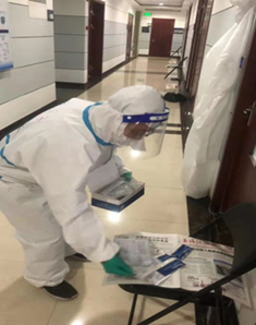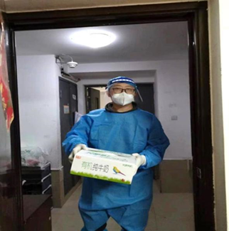 教工二支部屈泽华同志在共享仪器平台值班的同时,报名志愿者,参与食堂餐盒打包和送餐工作。