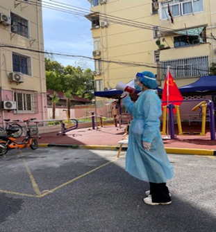 教工二支部王丹同志报名了社区志愿者(国顺路居民区总支部),负责宣传核酸码申请及帮居民点送外卖等工作。