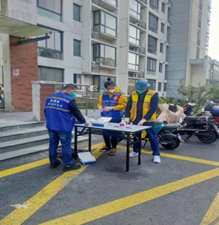 教工二支部孙畅同志担任宝山区杨行镇福地苑第一居民区社区志愿者,负责本楼的抗原检测盒、快递等物资发放,以及核酸检测秩序维护,帮助老人预约核酸、检测抗原。