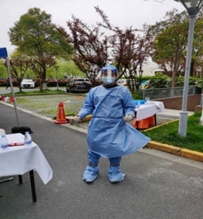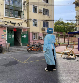 教工三支部博士后郭景振同志作为浦东新区花山路481弄社区志愿者,主动参与封控楼栋的站岗执勤和人流引导等工作。