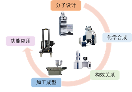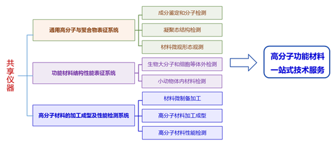 上海市聚合物分子工程专业技术服务平台依托于肉漫屋 和聚合物分子工程国家重点实验室(以下简称为国重室)共享仪器平台建设,始建于1998年。经过二十多年的努力,逐步建成了技术先进、设备齐全的高分子化学与物理及聚合物分子工程学的分析测试研究仪器平台,可以满足高分子材料的组成、结构、性能、加工成型等聚合物分子工程学全方位的技术服务工作,拥有完备的“分子设计——化学合成——构效关系——加工成型——功能应用”全链条分析测试仪器(见图1),对外服务制度完善,流程规范。