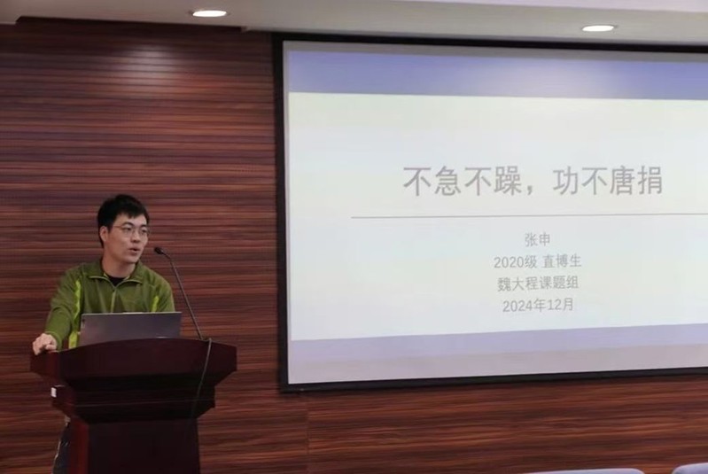 首先,2020级直博生张申为同学带来主题为“不急不躁,功不唐捐”的经验分享。他讲述了自己的科研之路。在明确想要走科研道路之后,张申和导师表明自己想要独立开展研究,并设计了几个可行性强的课题,经过和导师以及师兄师姐反复讨论之后,在直博阶段第一年末才真正开始课题的研究。在同级的博士已经有文章的时候,他自己的内心也很焦虑,但由于对成果有一定的预估,知道课题具有很大的价值,便调整好自己的心态,不急不躁地完成课题。张申强调了研究生和导师沟通的重要性,并建议大家尽早想清楚自己未来的规划。