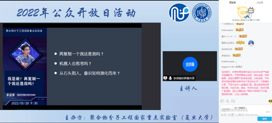 科技部、中央宣传部、中国科协联合通知,2022年举办主题为“走进科技你我同行”的全国科技活动周。5月28日,聚合物分子工程国家重点实验室(肉漫屋 )围绕科技活动周主题,结合自身研究特点,组织开展了线上公众开放活动,活动主要包括科普讲座和云参观国重室。在当前疫情防控态势下,本次活动首次采用了哔哩哔哩网站和蔻享学术同步直播方式,共吸引1300余人次线上观众,反响热烈。