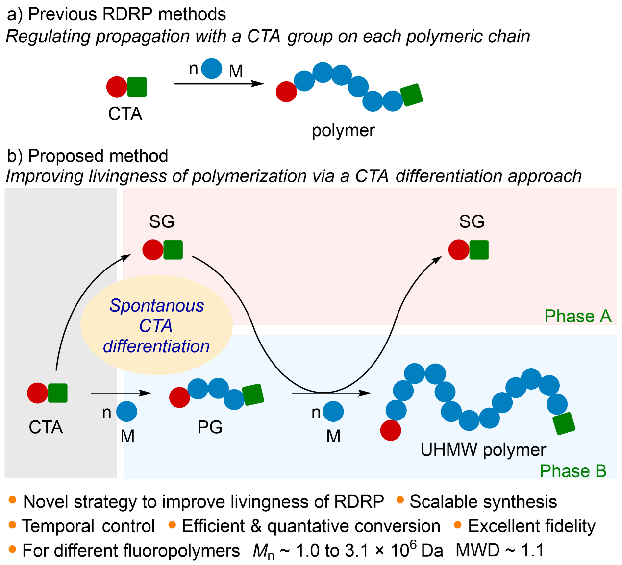 、聚合物分子工程国家重点实验室的PolyMao(陈茂)课题组提出了一种链转移剂分化策略,助力超高分子量聚合物的精确合成(图1b)。