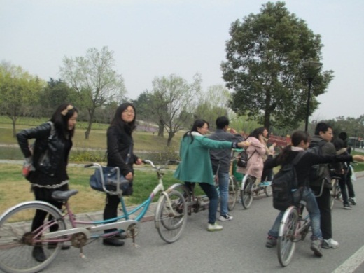 东方绿舟位于上海市青浦区,是上海唯一的集拓展培训、青少年社会实践、团队活动以及为一体的大型公园。到达目的地后,大家首先租借双人自行车游园。在三月的春光下,东方绿洲内百花鸣放,淀山湖畔碧波荡漾,平时忙于学业和科研的同学们完全沉浸在一幅幅自然美景中,往往立于某处景色不愿离开。行车游园之后大家兴致勃勃地参观了军事博物馆,并且登上1:1仿真航母甲板,近距离接触了各类坦克,战斗机等平时只能在媒体上得以一见的战斗武器。本次素质拓展的一大亮点在于勇敢者道路,包括跨越障碍、穿越铁网以及趣桥世界等项目,大家放松身心,一展拳脚,比力度拼速度,愉悦心情的同时身体也得到了锻炼。随后,大家来到大草坪,枕着绿地围成一圈分享各类零食作为午餐。这时候策划组提前准备的几款小游戏派上用场,大家边吃东西边玩游戏,有奖品也有惩罚,场面非常欢乐。