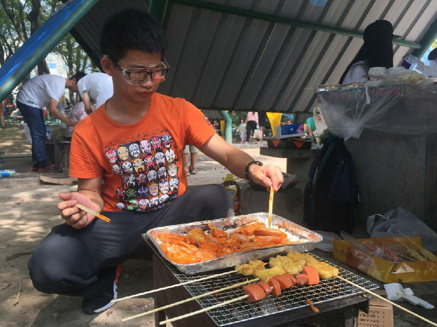 上午10点整,大家来到烧烤区集中,同学们拿出提前准备好的烧烤食材与调料,跃跃欲试。在弥漫着孜然香气的烧烤棚里,你不仅能看到大快朵颐,无法自拔的“吃货”们,还能看见深藏不露的“厨神”们堪比专业的手法!
