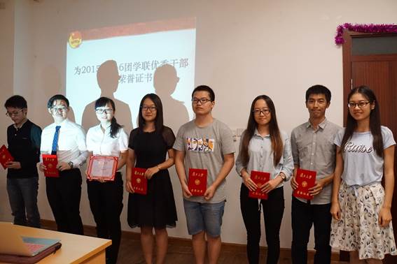 大会同时为上届团学联优秀干部进行了颁奖。颁奖结束后,高分子科学团委书记王丹妮进行了讲话,感谢上届团学联全体成员的努力工作,鼓励新的团学联干部秉承“团结、服务、牺牲”的复旦精神继续努力,更好地服务院系、服务同学,将团委学生会工作越做越好。