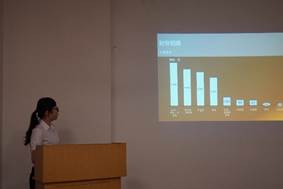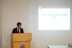 在致辞之后,2015-2016年本科生团委学生会副主席肖帅莹对上一学年分团委学生会的财务情况进行汇报,借助丰富准确的图表,她向各位学生代表们指出,与上一届相比,团学联财务支出有所控制,经费总支出与往年基本持平。随后,团委学生会主席肖建伟向全体学生代表作团委学生会工作报告,从五个方面总结了上一学年分团委学生会的活动举办和团队建设情况,其中,129主题活动、第十届高分子人节的顺利进行以及分团委建设等工作彰显了高分子人的热情与活力。