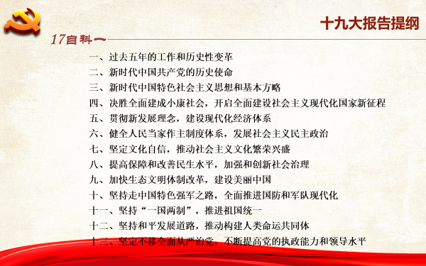 第一部分,总结了过去五年的工作和历史性变革。报告“五位一体”和“四个全面”的维度展开,并对中国社会主要矛盾的历史性变化做出判断。