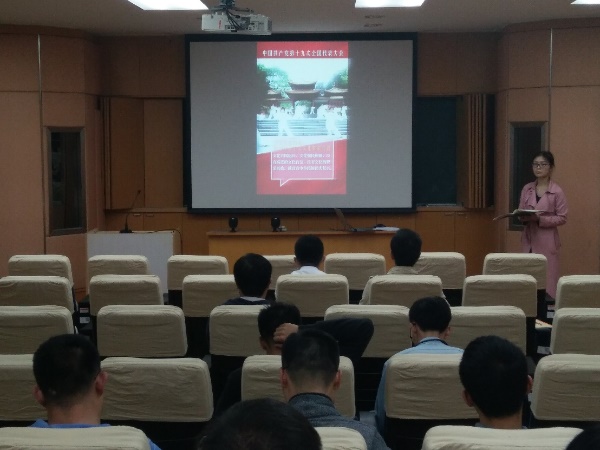 首先,支部书记何鲁泽分享了关于十九大报告的一个速览短片,短片主要介绍了过去五年的工作和历史性变革,新时代我党的历史使命以及今后将坚定不移从严治党的方针政策。