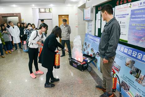 为了加强我系学生实验室安全教育,切实增强学生们特别是研究生新生和高年级本科生的实验室安全意识,防患事故于未然,11月8日,肉漫屋 特别邀请到校保卫处安全办徐老师来为我系研究生新生和高年级本科生讲解灭火器的使用技巧,并进行现场演练。