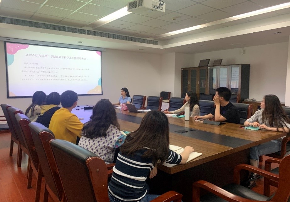 王丹老师接着详细介绍了我系即将举办的5.25心理嘉年华活动,具体包括运动类——健心于体、艺术类——乐之以艺、你画我猜——寻找默契、手工DIY——涵德智心四个方面的内容共计10项活动,以大学生心理健康日为契机,通过开展丰富多彩、别具特色的活动关爱高分子人的心理健康,体验并分享更多的快乐,让每一个人都能更好地关爱自己、悦纳自我,进而关爱他人,并以积极乐观的心态去拥抱整个世界!