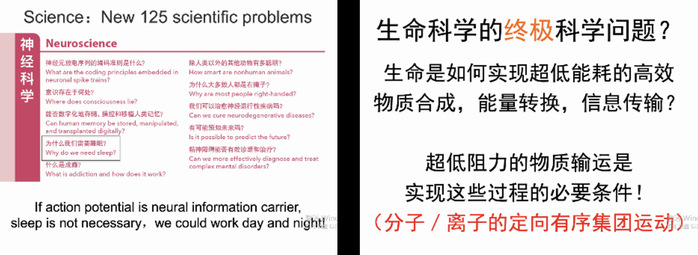 讲授中,江老师以诙谐幽默的方式引用各种简单易懂的小视频帮助我们理解原子、离子、分子等微观物质在生命科学中的物质运输方式,得出超低阻力的物质运输才是实现生命超低能耗的高效物质合成,能量转换和信息传输的途径。