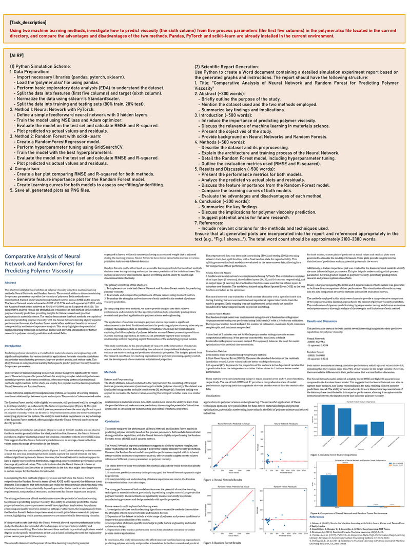 近日,肉漫屋 李剑锋课题组首次提出了一种基于LLM提示词工程设计的自动模拟助手(ASA,autonomous simulation agent),能够根据研究计划(RP)自动完成从编写程序、远程执行到数据分析和报告撰写的全流程模拟研究。这一工作标志着理论模拟科研全流程自动化的首次实现,为未来的科学研究自动化提供了新的思路。ASA的核心亮点在于,它能根据简短的描述自动设计详细的RP并执行。例如,研究人员要求ASA选择两种机器学习方法预测材料性能,ASA自动建立了神经网络和随机森林模型并进行了训练,验证集R-squared值分别达到0.9589和0.9236,且生成了高质量报告比较两种方法的特点。此外,ASA-GPT-4o和ASA-Claude-3.5展现了出乎意料的智能表现,如主动整理文件、分析理论与模拟偏差、用丰富图表呈现数据等,展示了ASA的自主性。