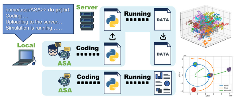 图1. 自动模拟智能体ASA通过LLM提示工程设计,实现了从实验设计到报告生成的全模拟科研流程自动化。