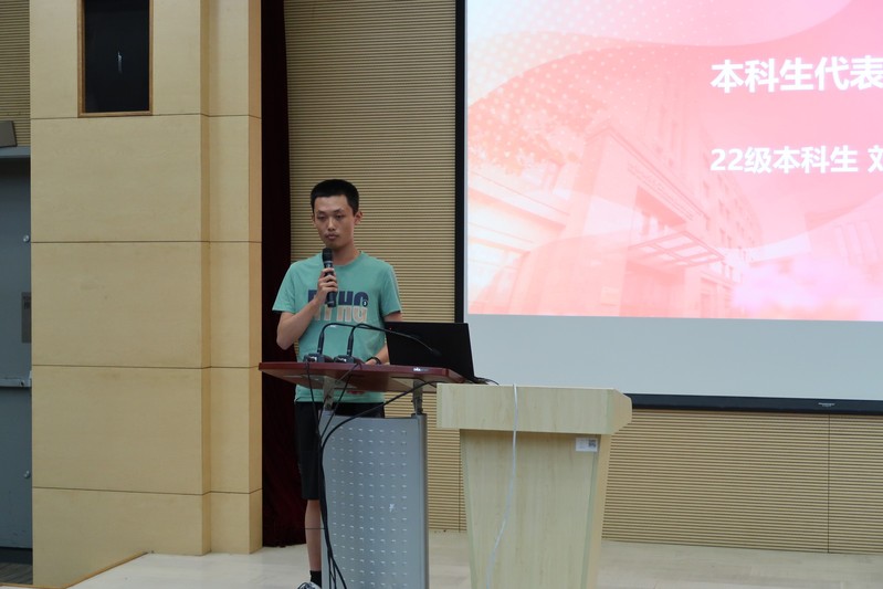 2022级本科班导师长俞麟老师作为教师代表,为同学们提出了建议,希望同学们学好基础知识,确定生涯发展目标,培养独立思考的能力和不怕挫折的能力,保持积极的心态,持续努力并逐步实现目标。
