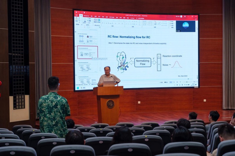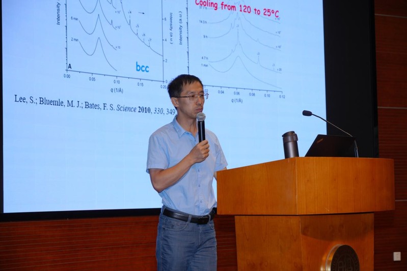 9日下午,由蒋滢研究员主持,同济大学吴昊教授介绍了多系统模型降阶的机器学习方法,从数学的角度让与会师生加深了对机器学习和软物质科学的理解。之后,华东理工大学张良顺教授、香港城市大学代亮教授分别就机器学习在聚合物相图绘制、扭结类型识别等领域进行汇报,开阔了与会师生的眼界。