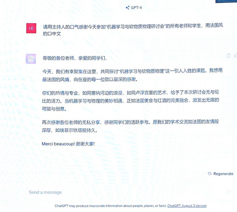 最后,会议在陈征宇、李剑锋两位教授与ChatGPT有趣的互动中圆满结束。