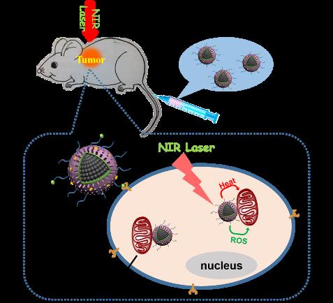 Mitochondria play an important role in various of cell activities, which is not only the power center of cell, but also a key regulator of programmed cell death. Compared to the whole cell, mitochondria are more sensitive to the change of environment, as a result, they readily become dysfunctional and then induce cell death. Recently, Prof. Yang and coworkers reported mitochondria targeting magnetic nanoparticles for enhanced phototherapy by integrating photothermal agents, photosensitizers, and targeting molecules together. This work published in Small and became the hot article of the journal in July (//www.materialsviewschina.com/2016/08/22397/). In vitro and in vivo experiments demonstrate the composite nanoparticles could effectively target mitochondria and exhibit brilliant treatment effect at low laser power density.Therefore, the mitochondria-targeting composite nanoparticles are expected to be an effective phototherapeutic platform.