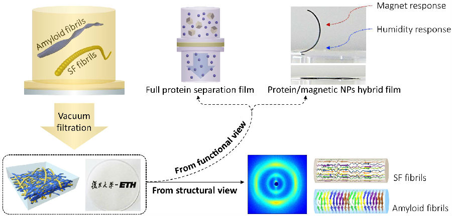 Professor Xin Chen, Professor Zhengzhong Shao and their research team in Fudan University published a new paper entitled “Modulating Materials by Orthogonally Oriented β-Strands: Composites of Amyloid and Silk Fibroin Fibrils” in Advanced Materials on 9 July 2014. This is a cooperative research work with Professor Raffaele Mezzenga in ETH Zurich when Dr. Shengjie Ling in Fudan University (first author) worked in ETH Zurich sponsored by the China Scholarship Council