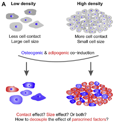 It’s shown by their study that cell size (surface area) and cell contact both can influence the differentiation and these factors together constitute the foundation of the research that how planting density affect differentiation of stem cells.